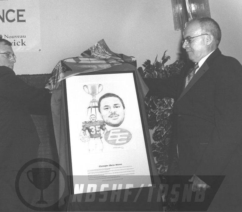 From his minor sport playing days at Shamrock Park through eight seasons in the CFL with Edmonton, Ottawa, and Vancouver, Saint John’s Chris Skinner exhibited the kind of tenacity that is found only in the great ones. He played at Simonds High School until the sport was dropped; and then at UNB until football suffered a similar fate. So off to Bishop’s University he went and, in due course, a first round draft selection by the Eskimos. Rookie, MVP, and outstanding player awards; all-star selections; a Grey Cup in 1987; 2,850 yards on 570 carries and another 2,874 yards on 278 receptions - these are among his Hall of Fame credentials. Hard work and a single-minded desire to succeed made him, in the words of one reporter, “the best football player ever developed in New Brunswick.” Enrolled in the New Brunswick Sports Hall of Fame, June 7th, 2003